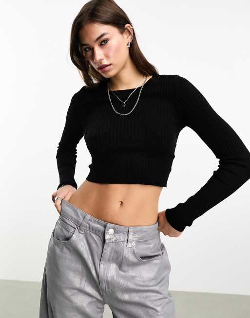 Only cropped ribbed sweater in black