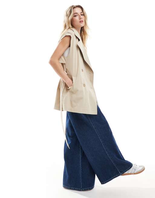 Only double breasted trench vest in stone