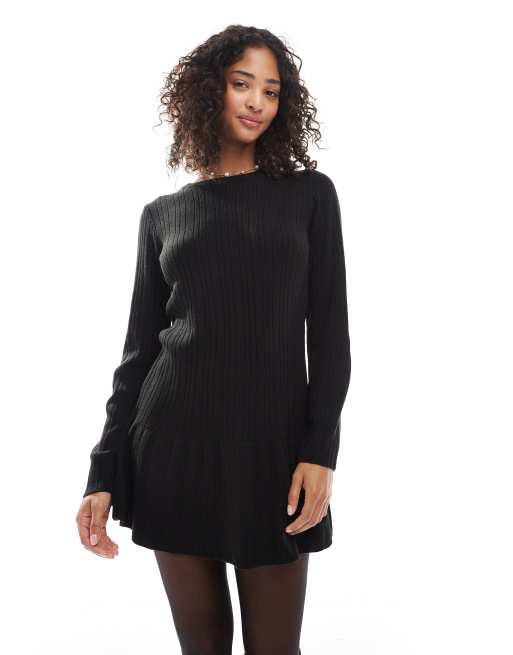 ONLY dropped hem knit mini dress in black