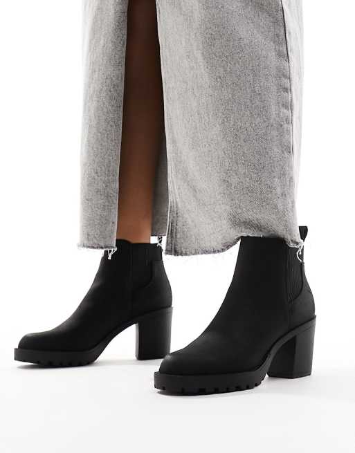 ONLY faux leather heeled boot in black