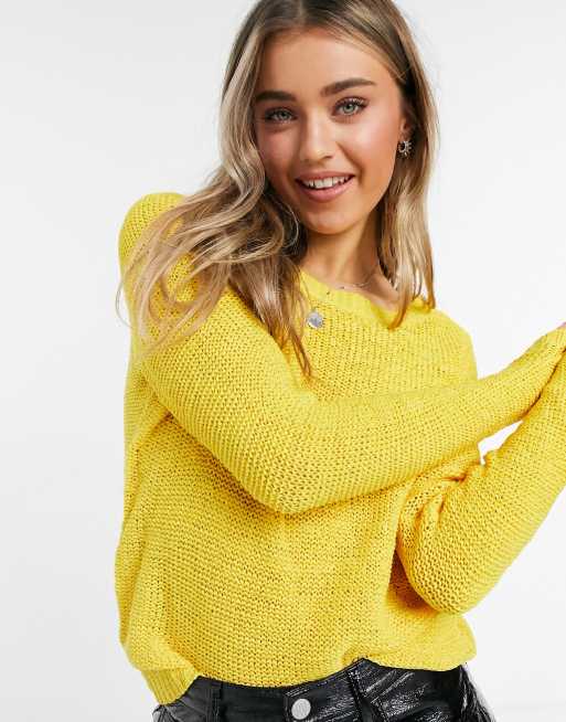 Only knitted long sleeve crew neck sweater in mustard yellow