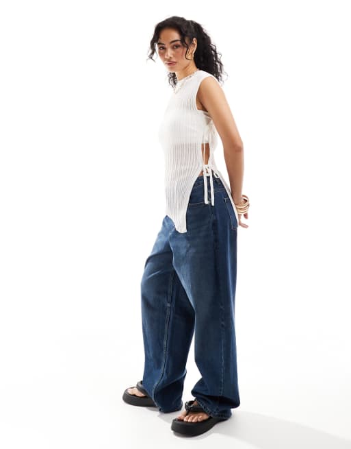 Only sheer asymmetric tie detail tank top in white