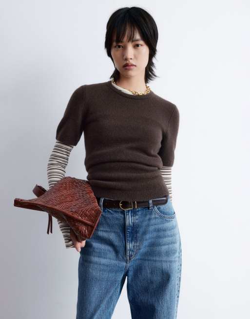 & Other Stories cashmere fine knit top in dark brown