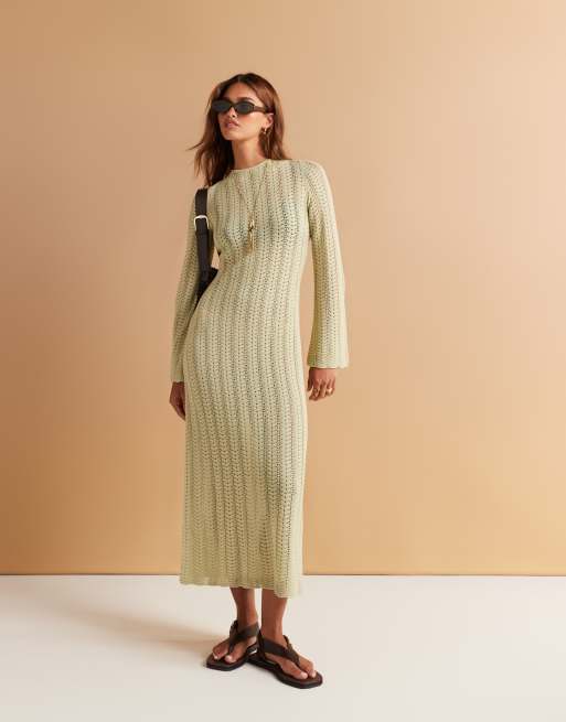 & Other Stories crochet knit maxi dress with open tie back in light green