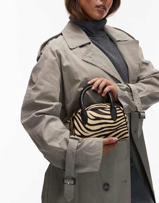 & Other Stories hairy zebra print leather nano bowling bag in white multi