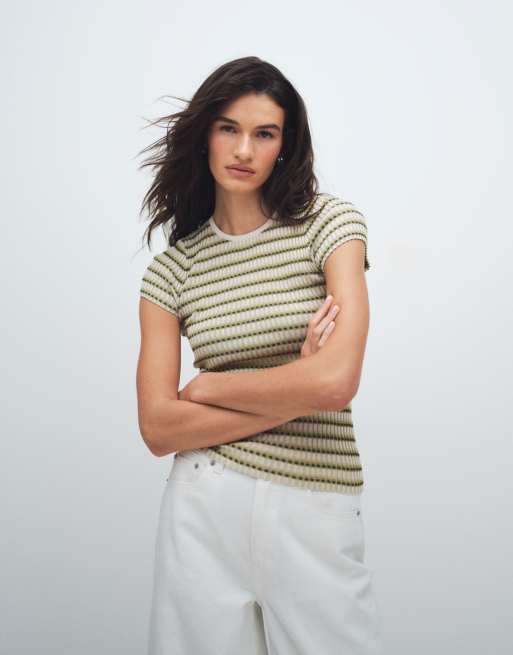 & Other Stories knit t-shirt in green stripes