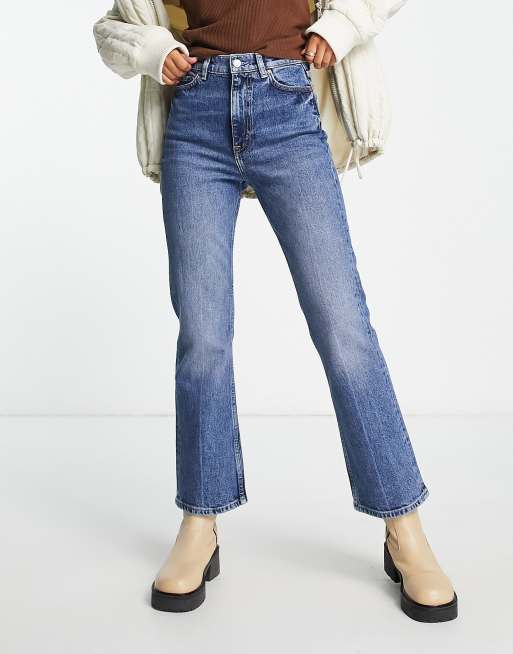 & Other Stories Mood cotton high rise flare cropped jeans in blue - MBLUE