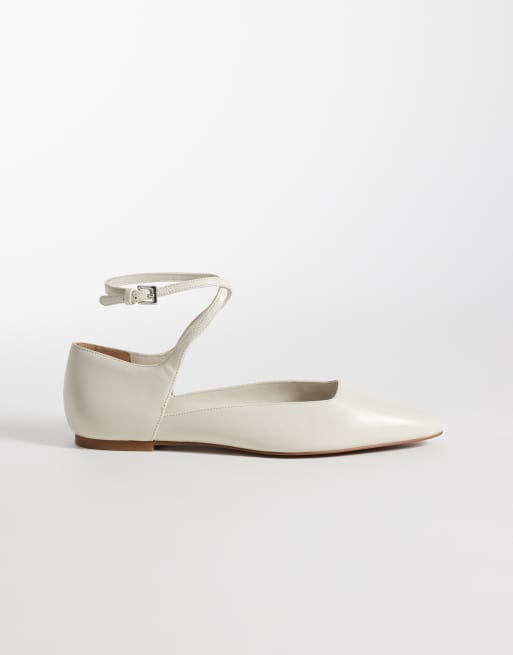 & Other Stories real leather strap ballet flats with real suede lining in white
