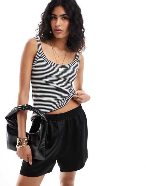 & Other Stories scoop neck mini ribbed tank top in white and black yarn dye stripes