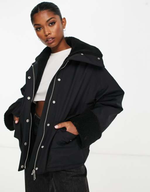 & Other Stories shearling trim jacket in black