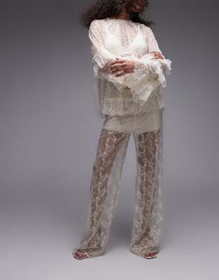 & Other Stories sheer lace pants with scalloped hem and fitted micro shorts in off white