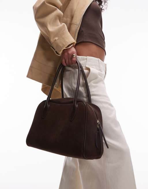 & Other Stories suede two handle shoulder bowling bag in dark brown