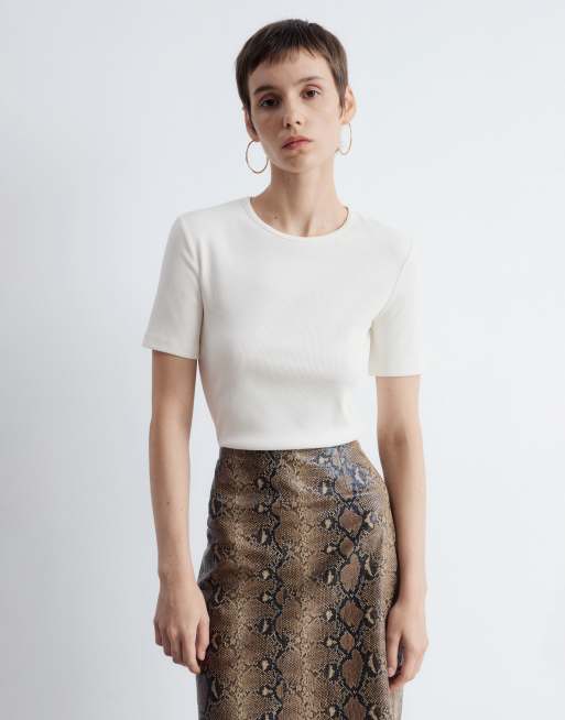 & Other Stories super soft ribbed slim T-shirt in off white
