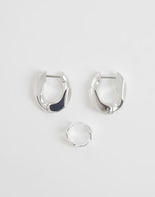 & Other Stories twisted hoop and cuff earrings set in silver tone
