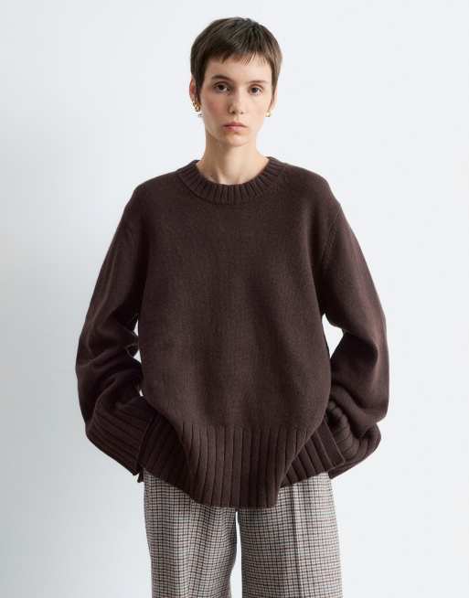 & Other Stories wool knit oversized sweater with deep ribbed hem in black