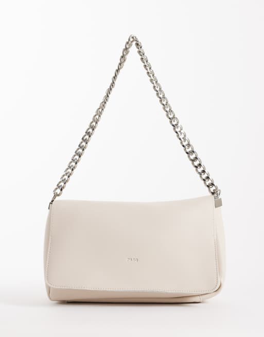 PASQ flap over crossbody chain purse in beige
