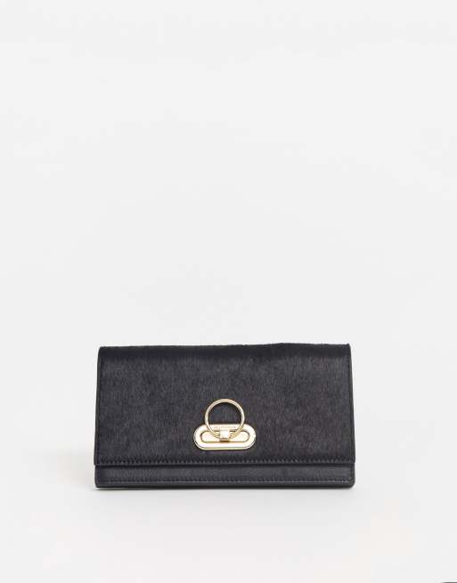 Paul Costelloe real leather black foldover purse with gold hardware