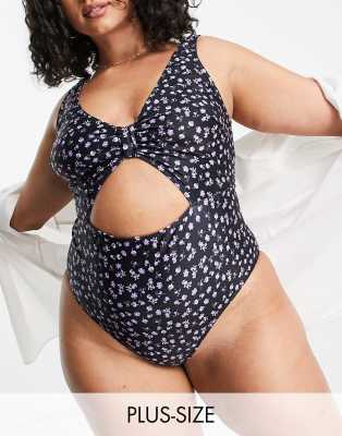 Peek & Beau Curve Exclusive cut out swimsuit in lilac floral print