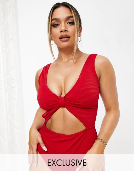 Peek & Beau Fuller Bust Exclusive cut out textured swimsuit in red