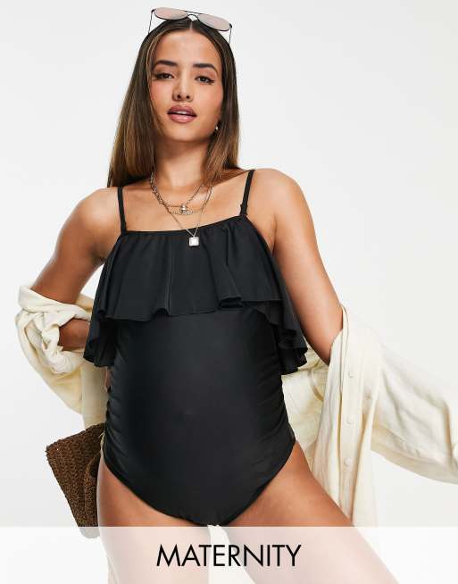 Peek & Beau Maternity Exclusive ruffle swimsuit with detachable straps in black