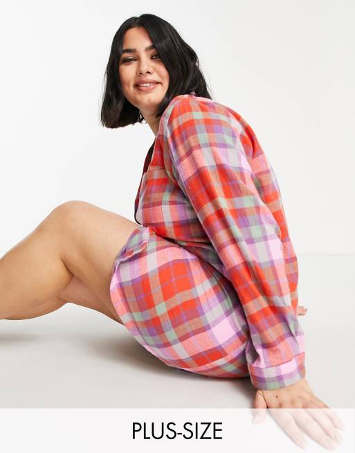 Pieces Curve long sleeve oversized pajama shirt in red check