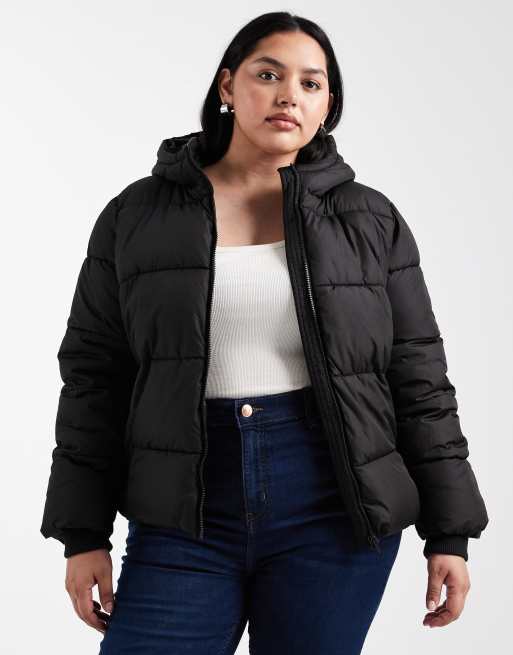 Pieces Curve padded coat with hood in black