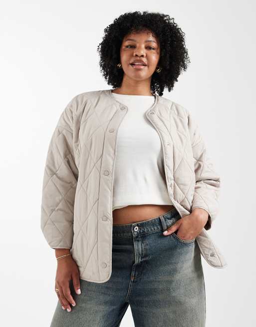 Pieces Curve quilted lightweight jacket in silver gray