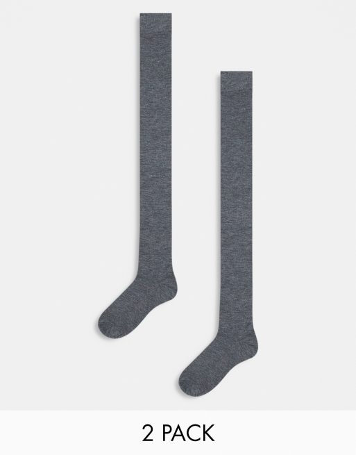 Pieces 2 pack knee high socks in gray melange