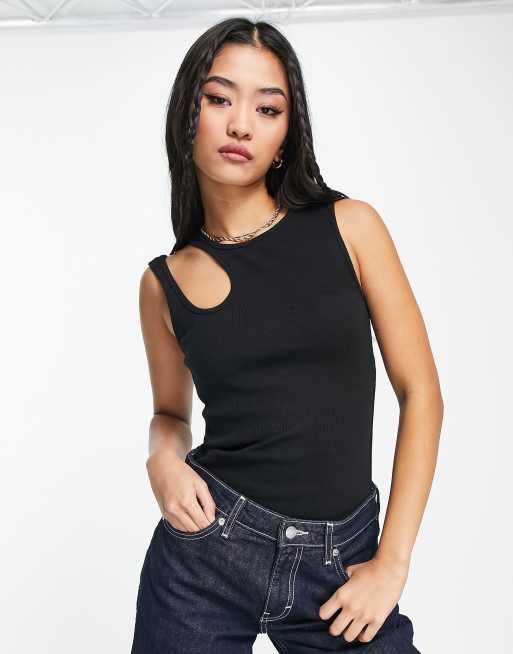 Pieces cut out racer neck tank top in black