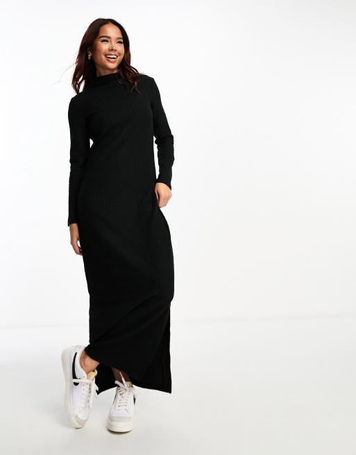 Pieces Exclusive high neck knit maxi dress in black