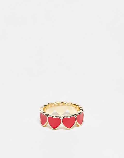 Pieces exclusive Valentines stacking heart ring in red and gold