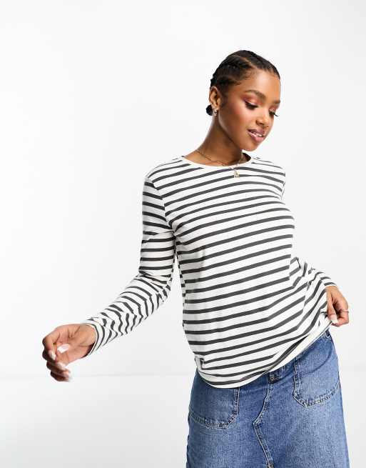 Pieces heavyweight long sleeved t-shirt in cream & gray