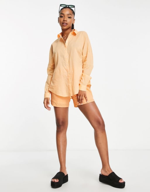 Pieces oversized shirt & shorts set in pale orange
