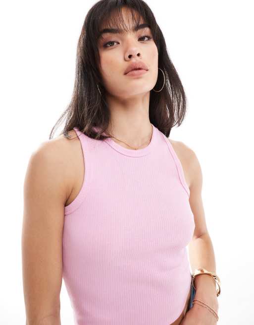 Pieces ribbed racer neck tank top in pink