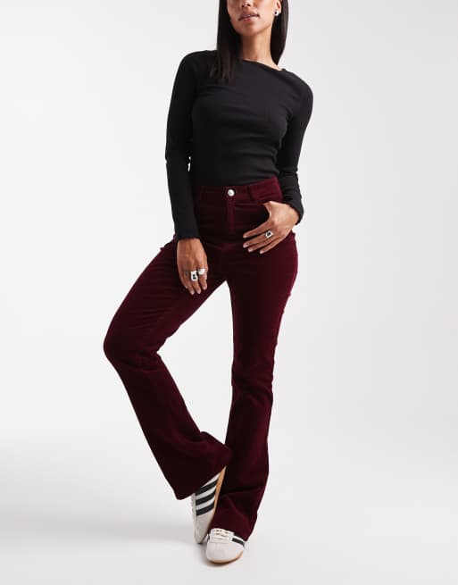 Pieces velvet corduroy pants in burgundy