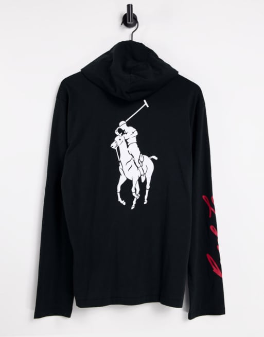 Polo Ralph Lauren player back and sleeve logo hooded long sleeve top in black