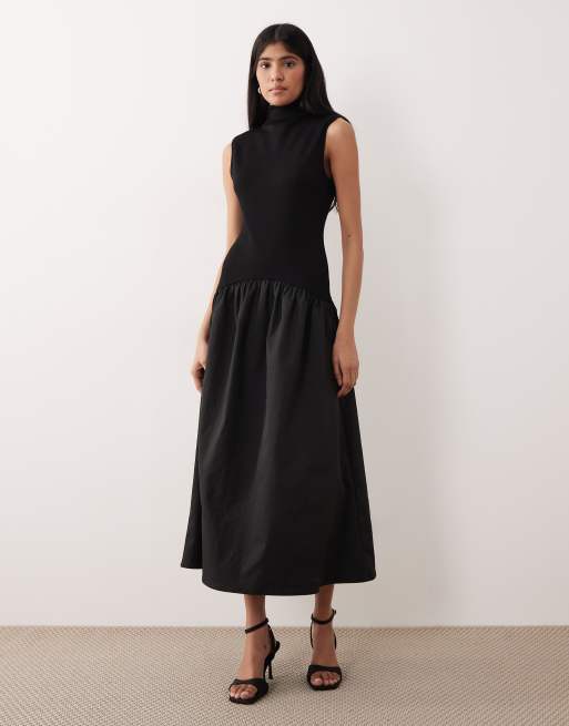 Pretty Lavish dropped waist sleeveless midaxi dress in black