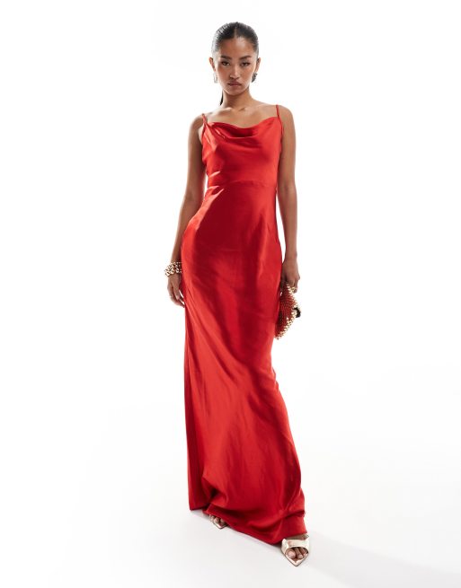 Pretty Lavish Keisha satin maxi dress in red