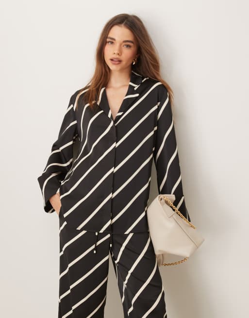 Pretty Lavish relaxed shirt stripe in black and cream - part of a set