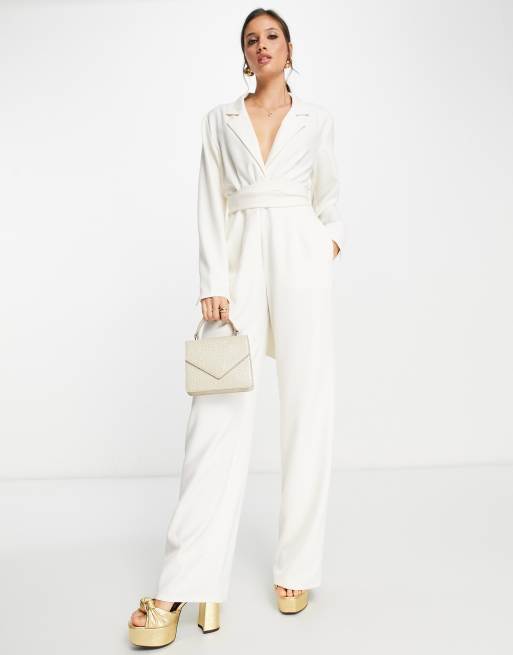 Pretty Lavish wrap waist tailored jumpsuit in cream