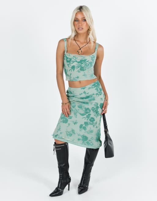 Princess Polly devore velvet midi skirt in mint floral - part of a set
