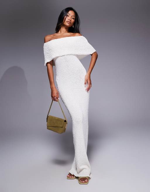 Princess Polly Nixen deep off the shoulder boucle knit maxi dress in cream