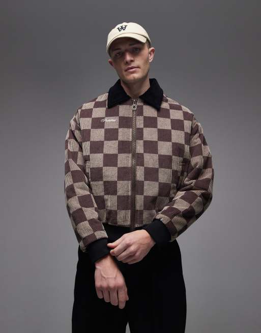 Prohibited checkered bomber jacket in brown