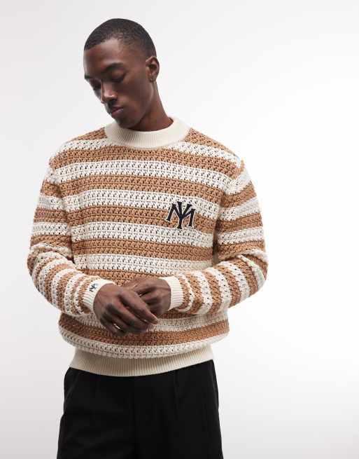 Prohibited striped light knit sweater in brown