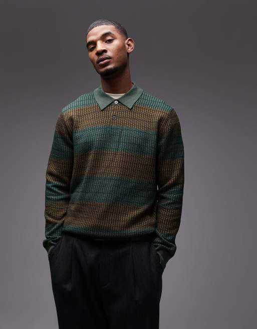 PS Paul Smith striped knit sweater in green and brown
