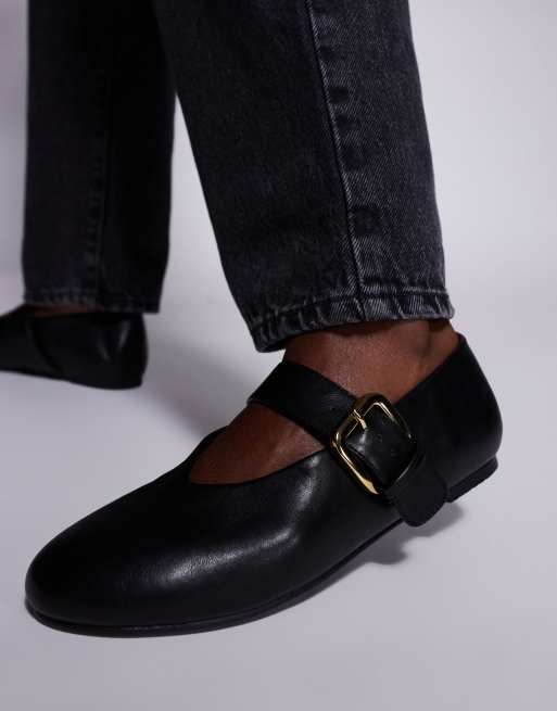 Public Desire Wide Fit buckle detail ballet flats in black