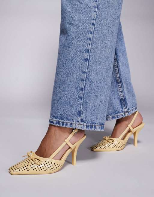 Public Desire Alchemy laser cute sling back heels with bow in yellow