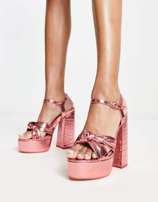 Public Desire Exclusive Kiss platform heeled sandals in pink metallic
