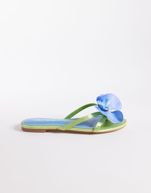 Public Desire Magnolia 3D floral flat sandals in green and blue