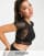 Public Desire mesh beach crop top & short set in black glitter mesh